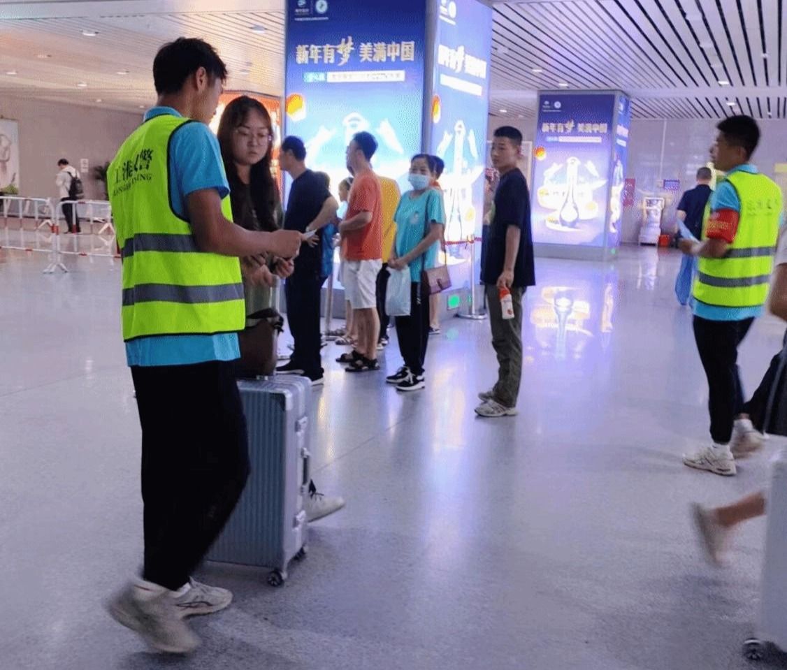 绷紧防诈之弦,筑牢平安之堤 ——太阳成城集团tyc234cc官网“火热青春,壮志报国”社会实践团前往安庆市火车站开展反诈骗志愿活动