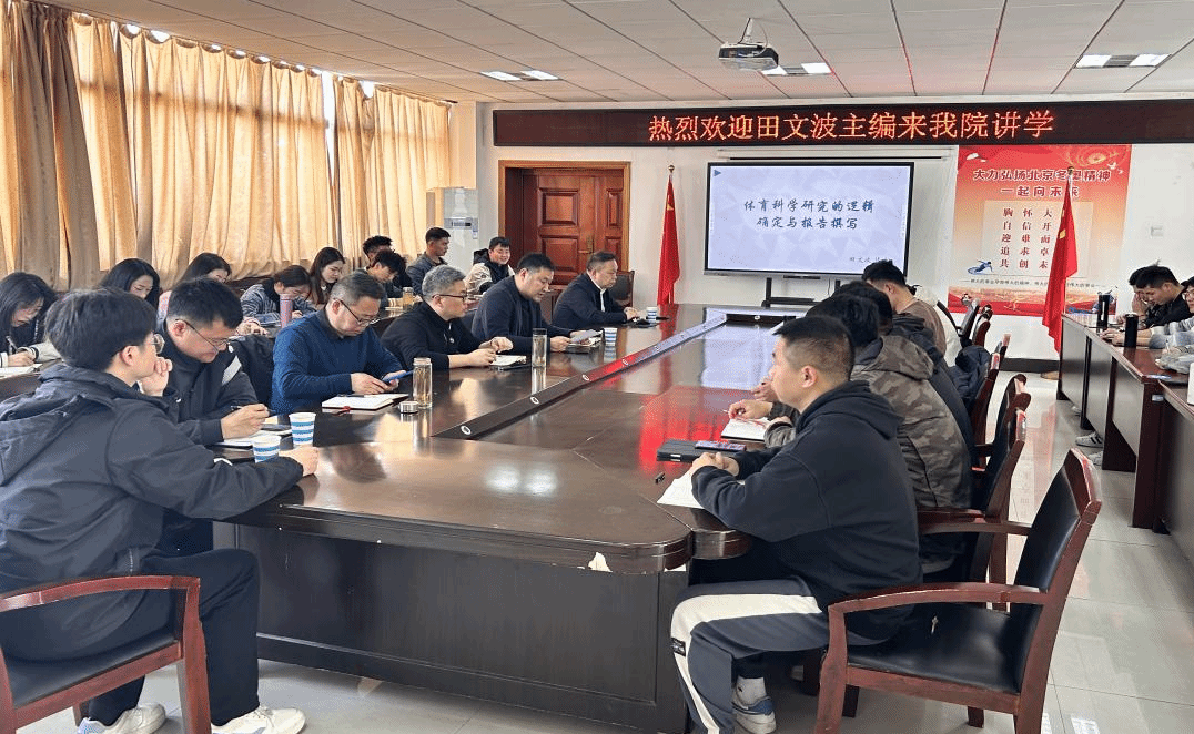 3月23日,《武术研究》主编田文波博士应太阳成城集团tyc234cc官网邀请,在体育馆三楼会议室作了题为“体育科学研究的逻辑确定与报告撰写”的学术讲座。讲座由太阳成城集团tyc234cc官网经理周多奇主持,副经理王晓东、相关专业教师、研究生到场聆听了讲座。