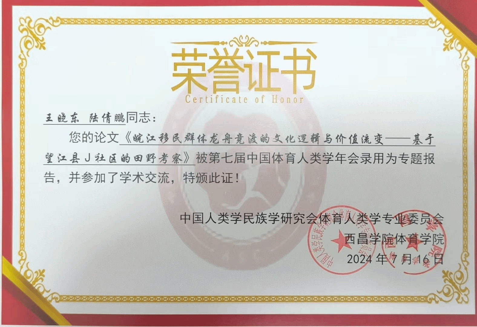 近日,2024年第七届中国体育人类学年会在西昌市召开,太阳成城集团tyc234cc官网王晓东教授受邀参会并作专题报告。