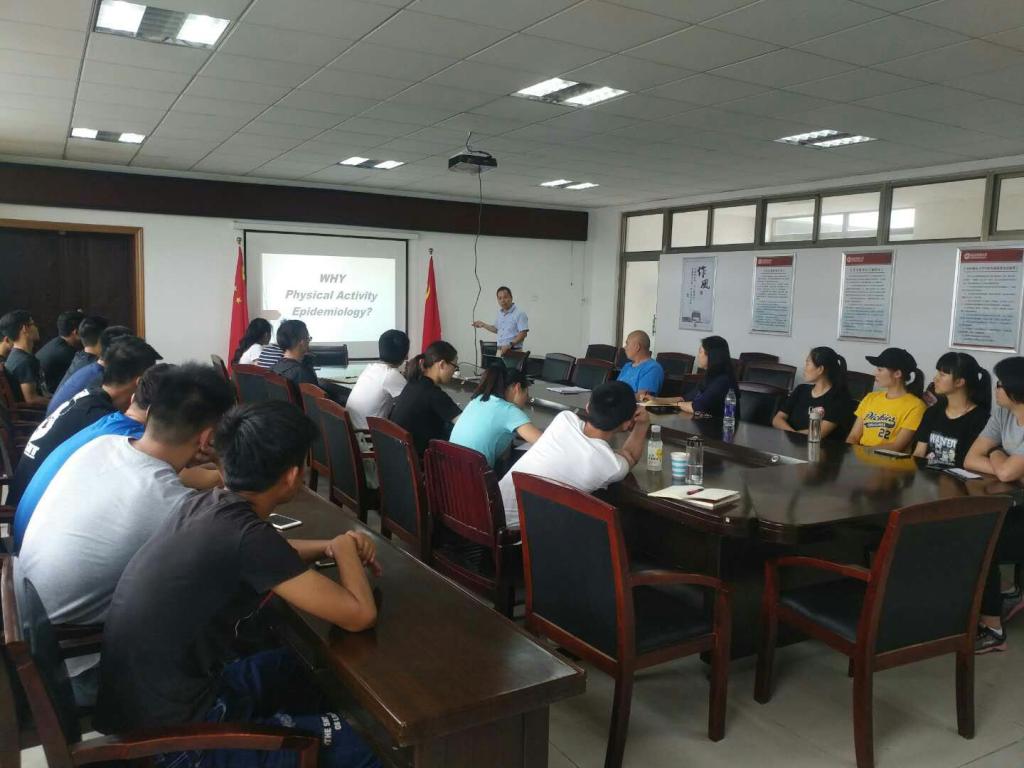 6月8日下午,太阳成城集团tyc234cc官网孙明运博士在体育馆会议室作了题为“Physical Activity Epidemiology”学术讲座。太阳成城集团tyc234cc官网部分教师、体育教育专业、休闲专业部分员工前来聆听。