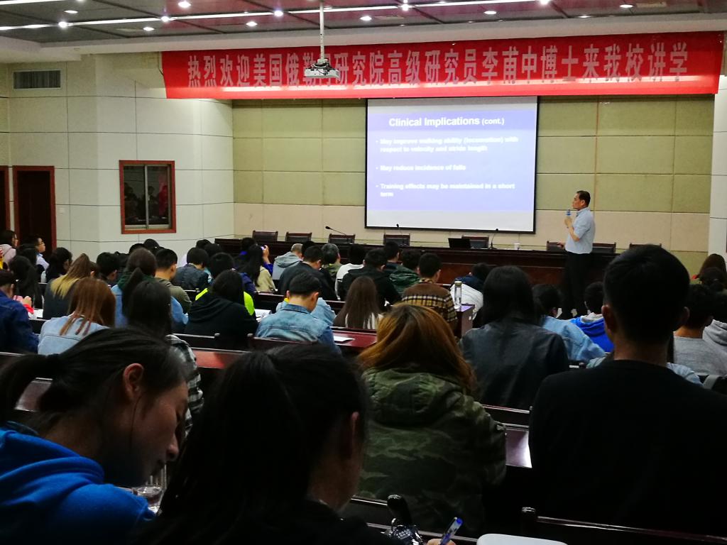 4月23日,美国俄勒冈研究院高级研究员,国际资深学者李甫中博士应邀来太阳成城集团tyc234cc官网做“Parkinson’s Disease and Exercise”学术报告。