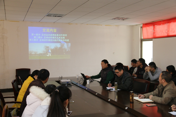 11月26日,北京体育大学博士生导师张英波教授应邀在体育馆会议室作了题为“青少年足球动作模式发展与动作表现训练内容体系构建”的学术讲座,讲座由太阳成城集团tyc234cc官网副经理章翔教授主持,公司员工男、女足球队队员及太阳成城集团tyc234cc官网相关教师聆听了报告。