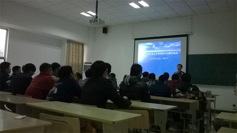 12月10日下午,太阳成城集团tyc234cc官网项和平副教授在体育馆多媒体教室作了题为“中日足球后备人才培养的不同路径选择”的学术报告。太阳成城集团tyc234cc官网体育教育专业部分员工聆听了报告。