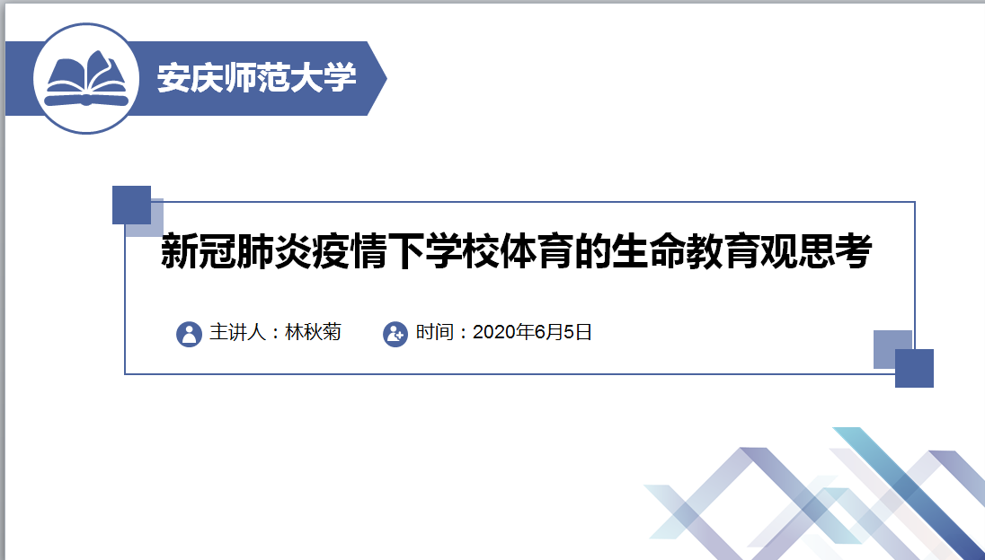 6月5日晚上19:00分,公司林秋菊副教授在线作“新冠肺炎疫情下公司体育的生命教育观思考”学术讲座。公司经济与管理公司、教师教育公司、音乐公司、美术公司、太阳成城集团tyc234cc官网等100余名同学聆听了讲座。
