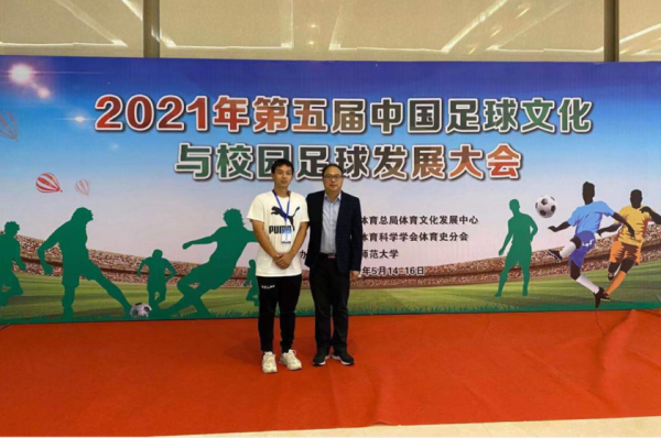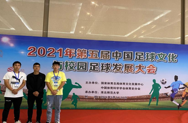5月14—16日, 2021年第五届中国足球文化与校园足球发展大会在淮北市矿业会议中心举行,公司乔伟老师指导2019级体育教育专业查涛同学撰写的论文《后疫情时代安徽省校园足球发展思考研究》被大会录用为专题报告,并参加了学术交流汇报。