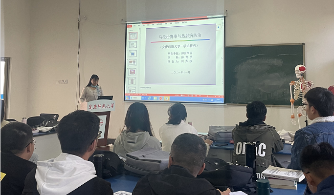 2021年11月16日,公司刘秀珍老师在体育馆多媒体教室为太阳成城集团tyc234cc官网员工作主题为“马拉松赛事与热射病防治”学术讲座。