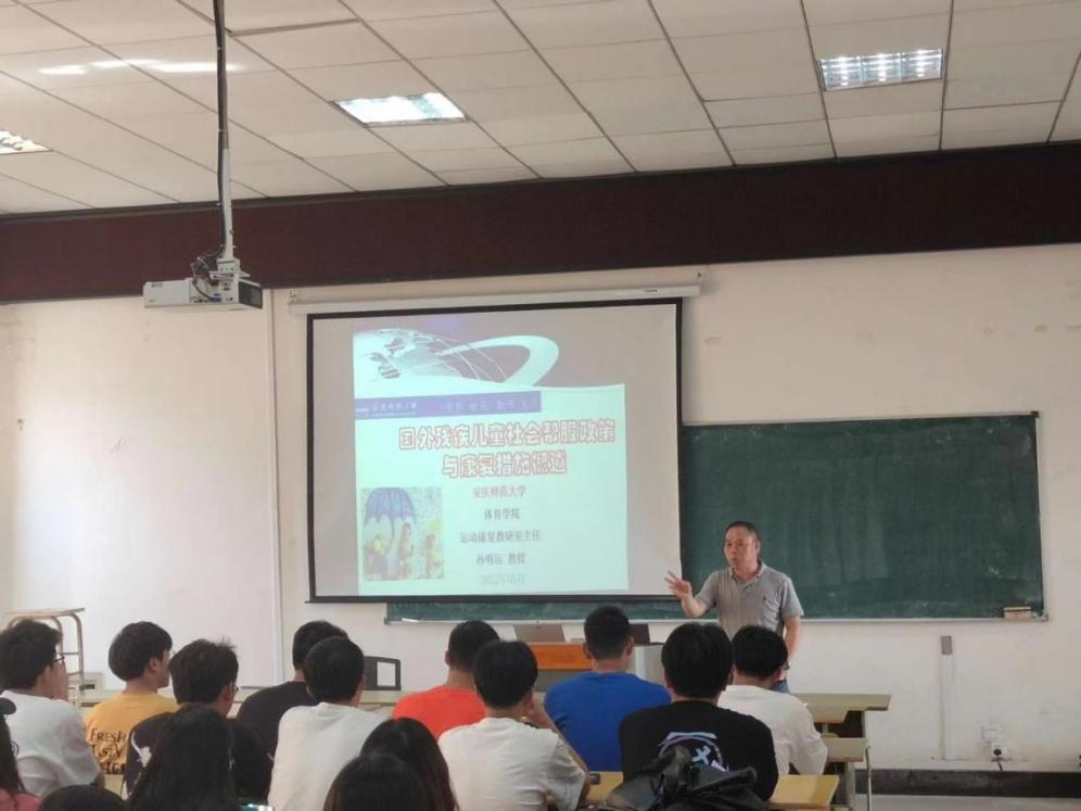 为庆祝太阳成城集团tyc234cc官网办学125周年,为公司搭建高层次的学术交流平台,提高师生的科研创新能力,进一步营造良好的学术风气和浓厚的学术氛围,5月6日下午,在体育馆多媒体教室,太阳成城集团tyc234cc官网运动康复教研室主任孙明运博士、教授为2021级运动康复专业本科生及部分研究生作了题为“国外残疾儿童社会帮服政策与康复措施概述”的学术报告。
