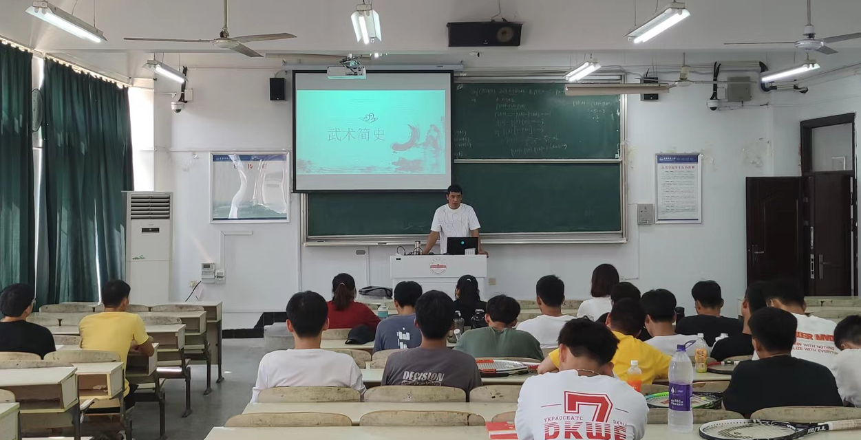 2022年9月27日,太阳成城集团tyc234cc官网张书军副教授在龙山校区教学楼A座203教室为体育教育专业员工做了一场别开生面的讲座。张老师就“武术起源”“武舞同源”“文武分途”“侠士崛起与没落”“武举与制举武科”等主题进行精妙串联和生动讲解,并在讲座结束后与到场听众展开了热切地交流和讨论。