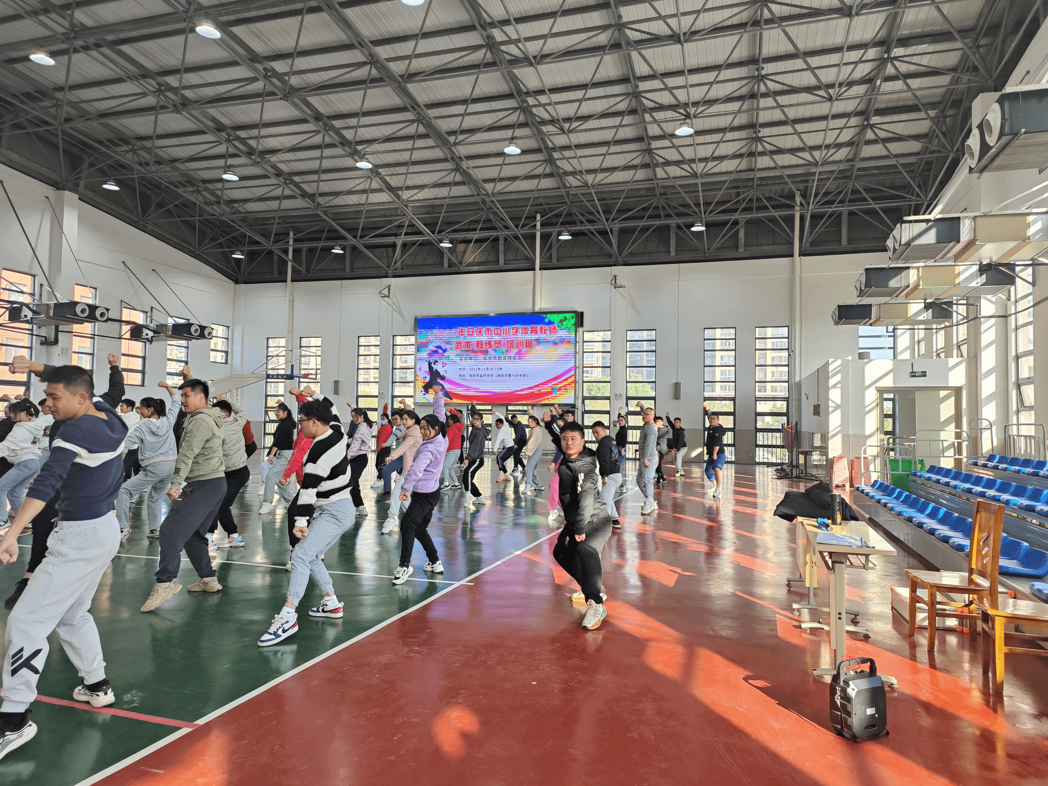 11月18至19日,由安庆市教育体育局主办的2023年安庆市中小学体育教师武术(教练员)培训班在安庆延乔中学(原安庆第十四中学)举行,以区、县教育局为单位推荐的80余名骨干教师参加了本次培训班。公司太阳成城集团tyc234cc官网王思乐博士受邀为本次培训班讲学。