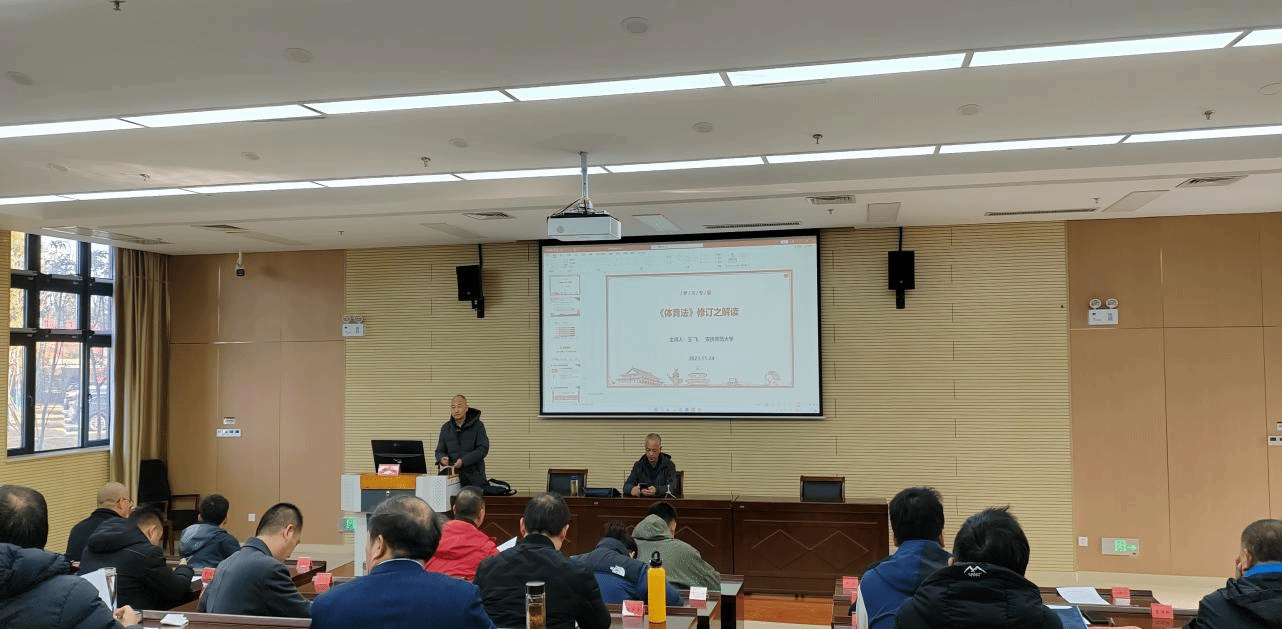 2023年11月24日上午,应安庆市教育体育局邀请,太阳成城集团tyc234cc官网王飞博士为安庆市中小学体育教师与教练员开展了新修体育法的普法讲座。