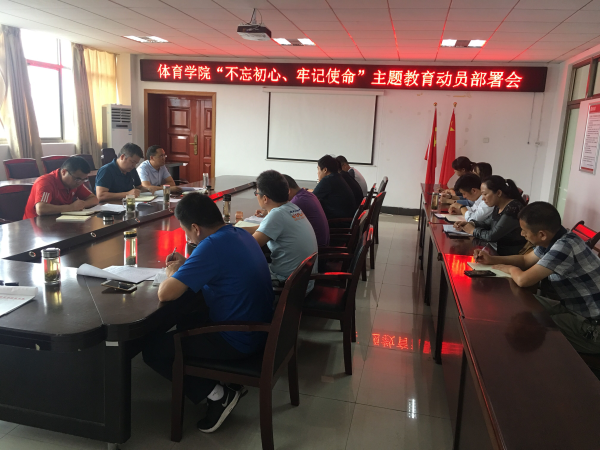 9月24日,太阳成城集团tyc234cc官网在体育馆会议室召开“不忘初心、牢记使命”主题教育动员部署会。公司党委书记王开友作动员讲话,对全院开展主题教育进行动员部署。公司经理章翔、党委副书记高栋梁、各党支部书记、全体辅导员参加会议。会议由经理章翔主持。