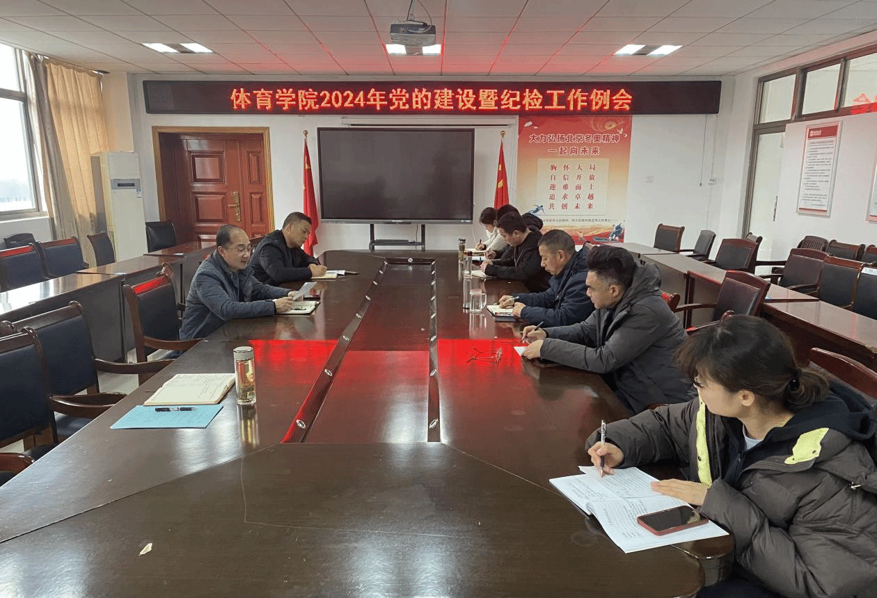 3月4日,太阳成城集团tyc234cc官网在体育馆三楼会议召开2024年党的工作暨纪检工作例会,传达、学习公司相关文件精神,布置公司近期党的工作和纪检监察相关工作。会议由公司党委副书记、纪委书记王玮主持,公司党委秘书、组织员、各党支部书记、教研室主任、纪委委员参加会议。