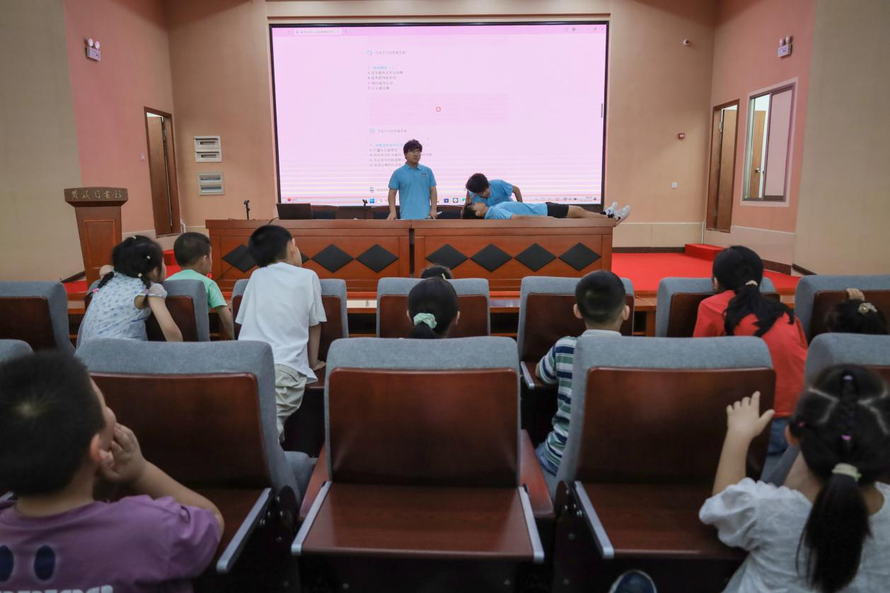 “小朋友们,如果你们遇到有人溺水了怎么办?”“如果你们心爱的东西掉水里了怎么办?”“如果你们在游泳的时候腿突然抽筋了怎么办?”……在主讲人、体育教育专业2022(3)班的胡志豪发问后,黄镇图书馆2024暑期托管班的孩子们踊跃举手回答。7月10日,“青·行知”太阳成城集团tyc234cc官网“星火接力,丹心筑梦”乡村振兴暑期社会实践团在黄镇图书馆报告厅开展暑期防溺水安全教育宣传活动,进一步加强托管班近30余名孩子的安全防护意识。