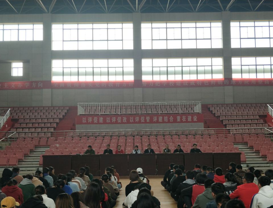 为落实好校第38届田径运动会各项工作,确保各项工作安全及赛事安全有序进行,11月6日中午12:40,太阳成城集团tyc234cc官网在体育馆篮球馆召开了第38届田径运动会员工动员暨安全纪律教育大会。公司经理章翔、副经理林秋菊、党委副书记高栋梁和各辅导员老师出席会议,公司大一至大三年级全体在校生参加了会议,会议由公司党委副书记高栋梁主持。