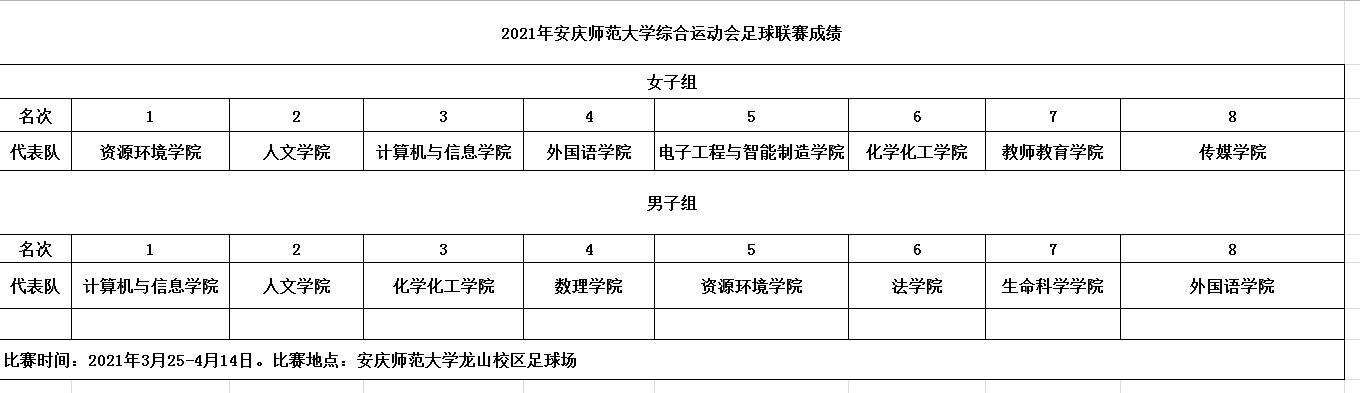 2021年太阳成城集团tyc234cc官网综合运动会足球联赛成绩