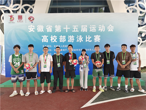 7月19日至21日,由安徽省人民政府主办的省第十五届运动会高校部游泳比赛在滁州落下帷幕。公司代表队9名队员在教练员姚彬彬老师带领下,获得1银3铜,共计5项二等奖和10项三等奖,并获得了体育道德风尚奖。