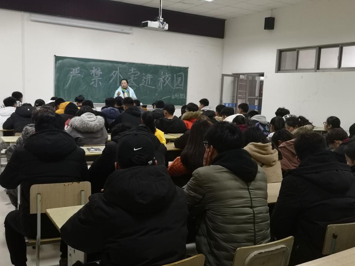 为进一步提高员工食品安全意识,2019年 3月1日和3月2日晚间体育公司18级体育教育专业和体育表演专业共9个班相继于体育馆多媒体教室开展了严禁外卖进校园”主题班会。