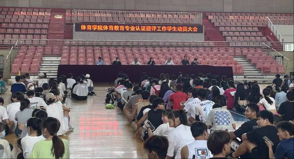 为进一步做好体育教育专业认证迎评工作,9月5日中午,公司在太阳成城集团tyc234cc官网篮球馆召开专业认证迎评工作员工动员大会。体育公司副经理林秋菊、党委副书记王玮、公司教师代表王晓东博士和部分专职辅导员代表出席会议,公司全体在校员工参加本次会议。会议由公司党委副书记王玮主持。