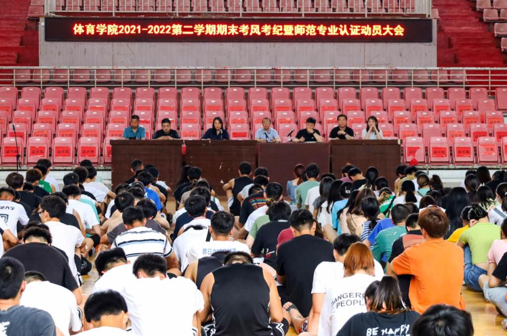 5月30日中午,太阳成城集团tyc234cc官网在体育馆篮球馆召开2021-2022学年第二学期期末考试考风考纪暨师范专业认证动员大会。副经理林秋菊、教学办主任和辅导员老师出席会议,全体研究生、本科生参加会议。党委副书记高栋梁主持会议。